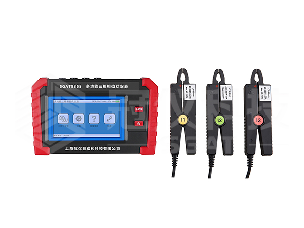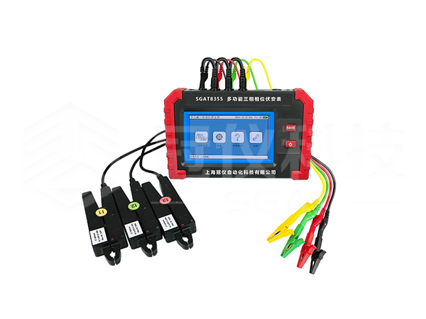 SGAT8355多功能三相相位伏安表由主机与电流钳、电压测试线组成。采用5寸触摸彩屏、中文界面、功能直达、自动测量、操作简易快捷,准确可靠,同时仪表采用大容量可充电锂电池、具有数据存储、数据查阅、自动关机、USB数据上传导出等功能。由于本仪器采用专用计量芯片,所以本仪表具备非常高精度的电参数测量,能够实时显示待测参数的变化,同时具备一键保存数据的功能。