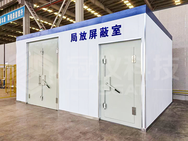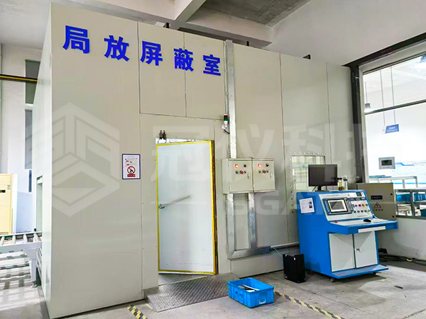 高压试验大厅为六面屏蔽体结构,其四面墙体及顶棚屏蔽均采用单层屏蔽板拼接组装焊接而成。