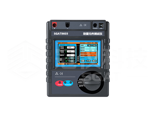 SGAT8603防雷元件测试仪用于测量各种压敏电阻(MOV)和气体放电管(GDT)性能参数测试,仪表具有独特的高压短路保护、过流保护功能,专业级的参数设置功能、高压限值设定、升压速度设定、合格范围设定、合格判断筛选、自动量程调节等功能。还具有单件测试模式、连续测试模式功能,特别适合批量元件测试。